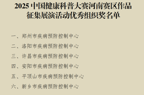 新乡市疾控中心在全省健康科普大赛中荣获优秀组织奖!